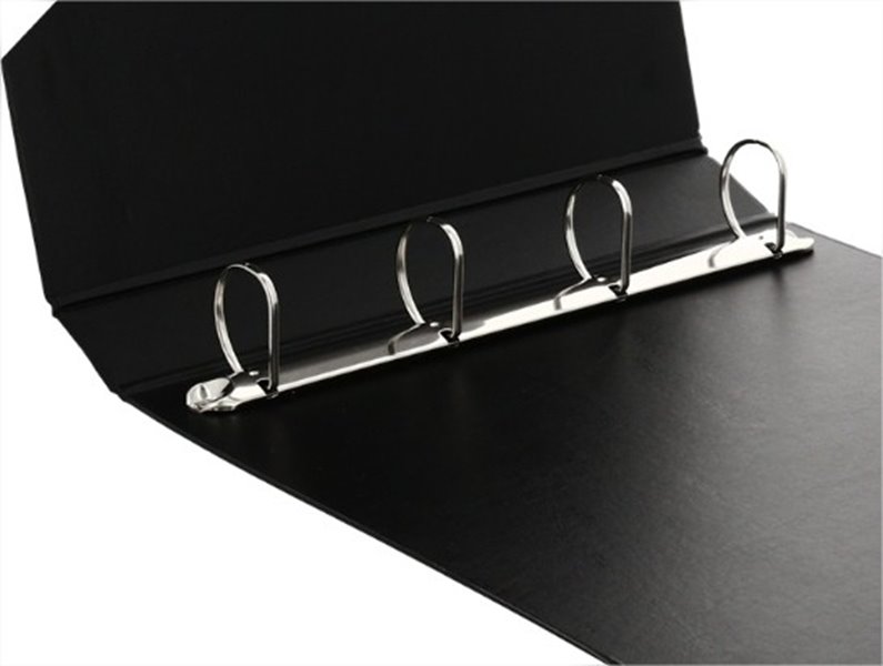 Ringbind med vendbar rygetiket. fremstillet i genbrugspap, betrukket med slidstærk vinyl. Forsynet med kraftig 4-rings mekanisme.