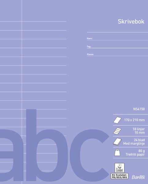 Bantex skolehæfter er produceret efter Norsk Standard NS4150. De er fremstillet 80g træfrit papir, indeholder 24 blade.