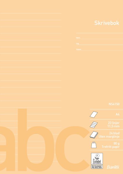 Bantex skrivehæfte Norsk Standard A4 linjeret 11,5 mm.