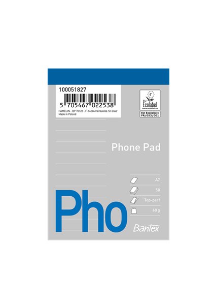 Online katalog » Notesbøger og blokke » Notesblokke » Hæftet » Bantex » A7 » Bantex telefonblok, A7, linjeret, uhullet