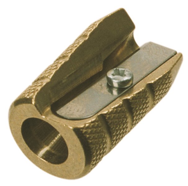 Klassisk kvalitetsblyantspidser i messing. Granatform. Passer til standardblyanter. På blisterkort.