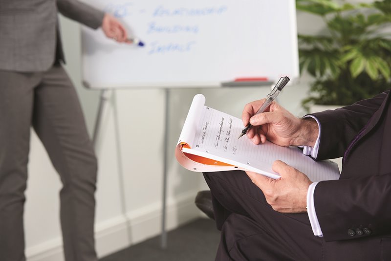 Blok til notestagning og let arkivering af noter. Med mikroperforering, huller og blødt kartonomslag. Hæftet top med skjulte hæfteklammer bag på blokken, så du undgår ridser på bordet. Optisk, hvidt papir, der er behageligt at skrive på og silkeblødt at røre ved. Nyttige internationale informationer om tidszoner, hovedstæder og telefonforvalgsnumre til hele verden. Særlig papirlinjering med overskriftsfelt, datofelt og dobbelte marginer, der gør det let at organisere dine noter.
