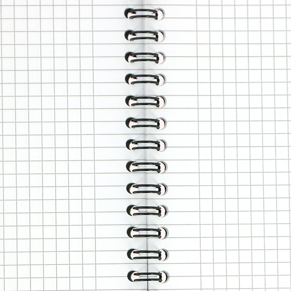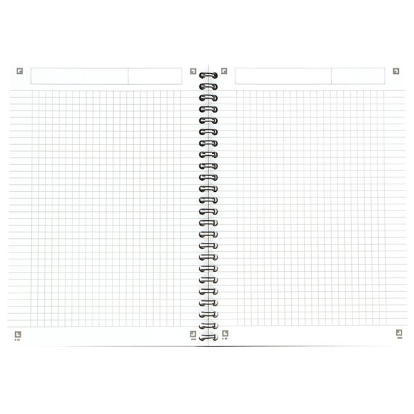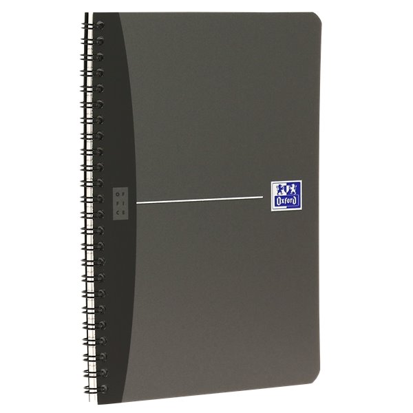 Sort plastovertrukket dobbeltspiral i ryggen sikrer holdbarheden og gør det samtidig muligt at lægge notesbogen fladt mod underlaget eller at åbne den helt op, hvilket sikrer maksimal komfort og fleksibilitet. Omslaget af polypropylen i dobbelt tykkelse med elegant metallic overflade kan modstå masser af slid og strabadser i lang tid fremover.