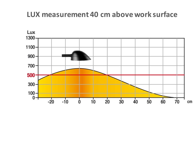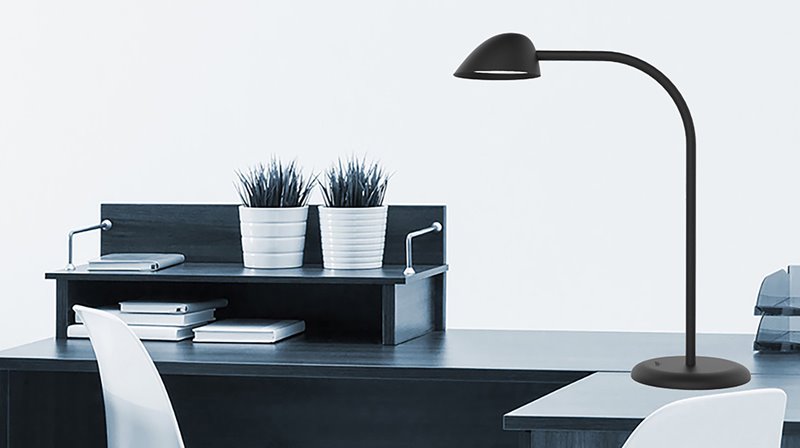 Hovedet som er i elliptisk form øger diffusionen og spreder belysningen på arbejdsfladen. Kompakt med fleksibel arm, og kan perfekt integreres på alle skrivebordeflader.