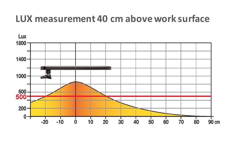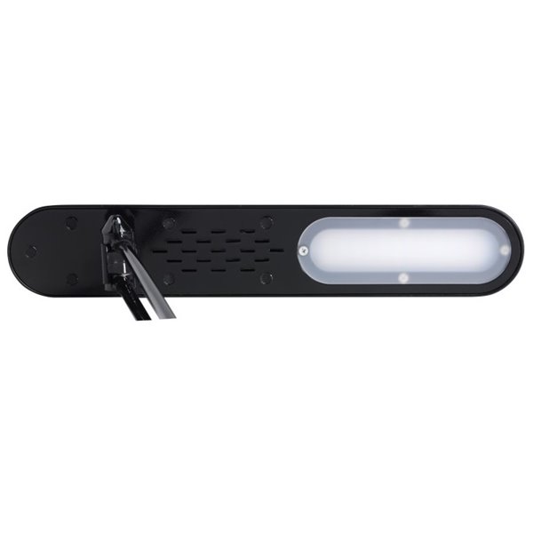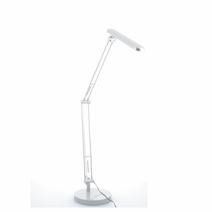 Dens dobbelt leddelt arm er udstyret med aflastningsfjedrene, der giver meget store og smidige bevægelser. Dens hoved er justerbar i alle retninger. Leveres med base og klemme.